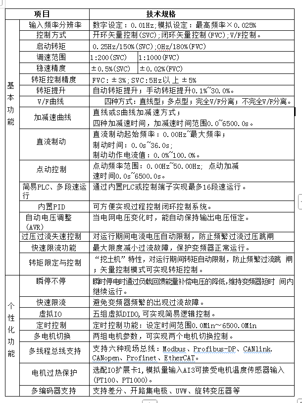 本系列變頻器是一款通用高性能電流矢量變頻器主要用于控制和調(diào)節(jié)??三相交流異步電機的速度和轉(zhuǎn)矩。采用高性能的矢量控制技術低速高轉(zhuǎn)矩??輸出,具有良好的動態(tài)特性、超強的過載能力,性能穩(wěn)定,保護功能強大,?人機界面簡潔、操作簡易。其廣泛應用于工業(yè)領域、制造業(yè)、軌道交通、能源與動力行業(yè)、造紙、拉絲、機床、包裝、食品、?風機、水泵及各種自動化生產(chǎn)設備的驅(qū)動。