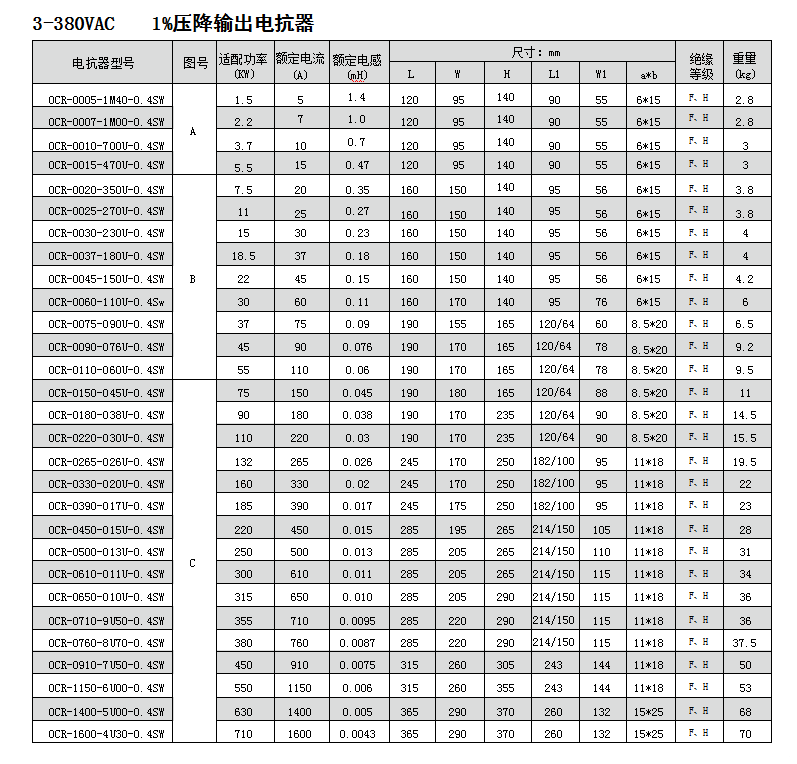 .將電機端子上的過電壓限制到:1000V至400V~(rms值)1150V至460V~(rms值)